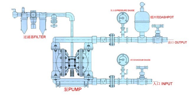 八、上海政博QBY塑料气动隔膜泵系统连接示意图:
