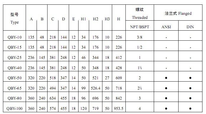 QBY1-15 QBY1-25 QBY1-32 QBY1-40 QBY1-50 QBY1-65 QBY1-80 QBY1-100